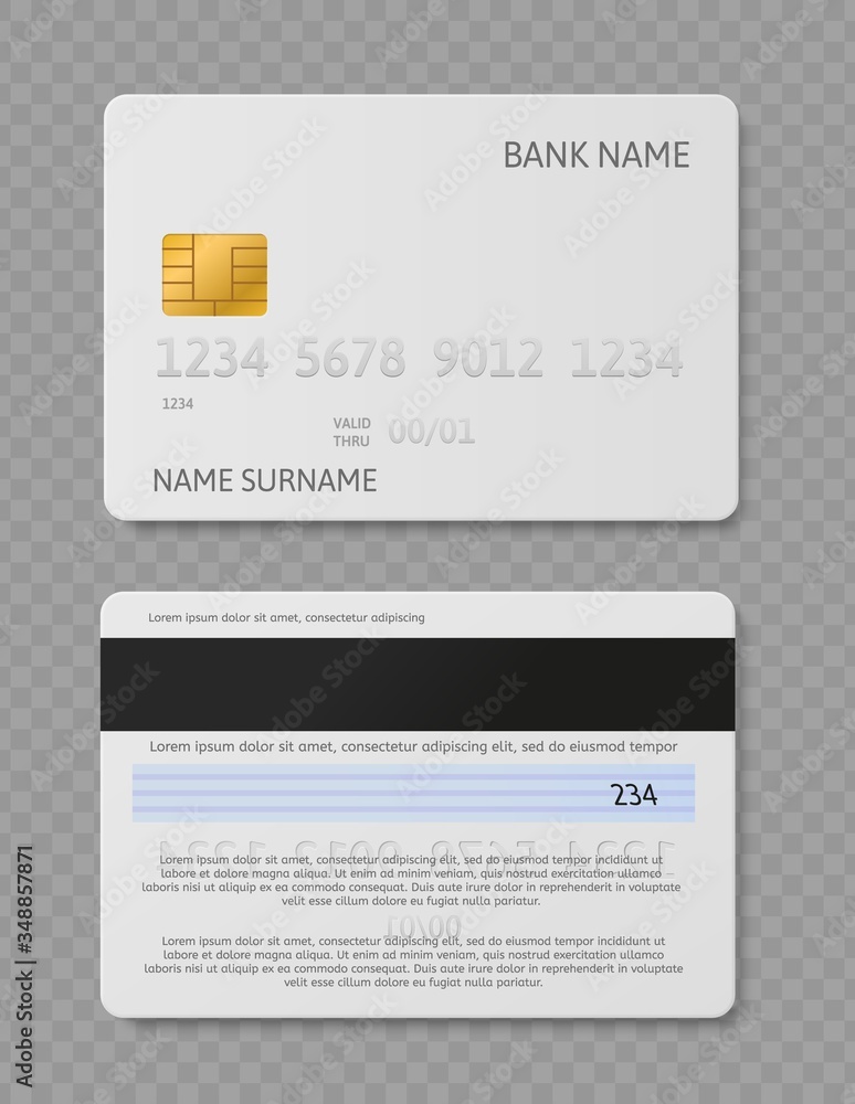 White Credit Card Realistic Plastic Cards With Chip Front And Back View Mockup Security Bank Payment Vector Finance Concept Stock Vector Adobe Stock